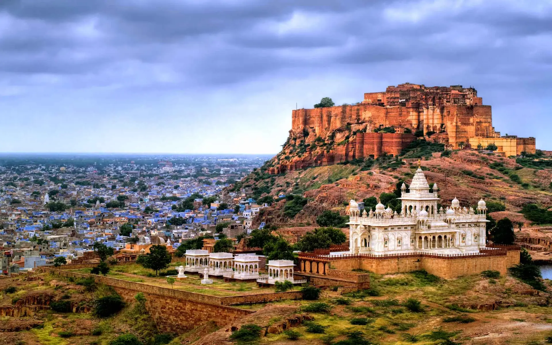 Following breakfast, proceed to Jodhpur, the "Blue City," known for blue-colored houses and ancient forts. Arrive at Jodhpur and check in to your hotel. Visit the imposing Mehrangarh Fort, which gives a bird's-eye view of the city. Visit its palaces, courtyards, and museums, and then Jaswant Thada memorial. Take a walk in the Clock Tower Market in the evening, renowned for handicrafts and textiles. Overnight at Jodhpur.